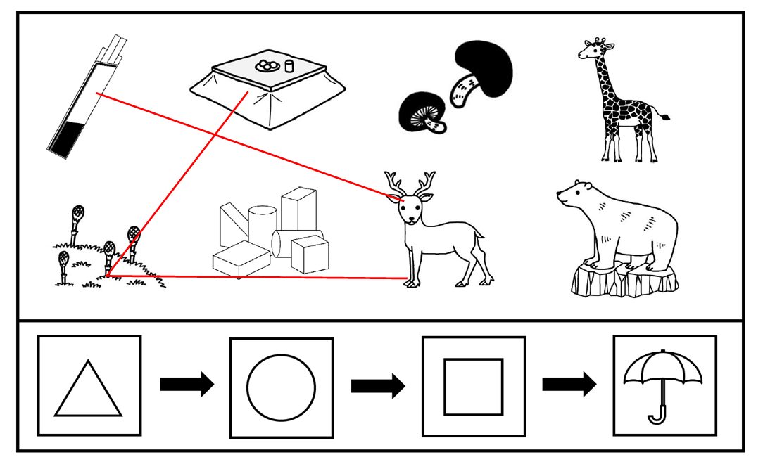 線結びをすることで、情報の整理ができますので、同じ絵を何度も使ったり、